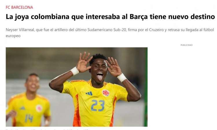 据《每日体育报》报道,曾受巴萨关注的哥伦比亚新星内塞尔-比利亚雷亚尔将不会前往西甲,他已与巴西球队克鲁塞罗达成预签合同,计划于今年底加盟并签约至2030年。