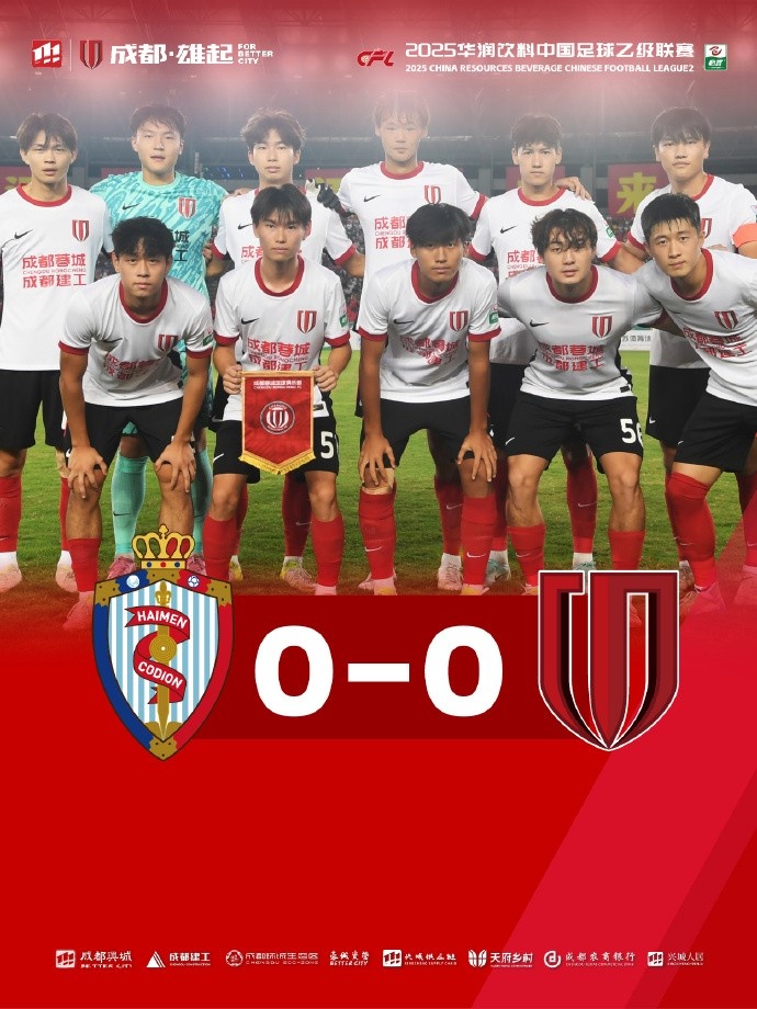 在2025华润饮料中乙联赛第28轮的比赛中,成都蓉城B队于10月4日19:30客场对阵海门珂缔缘。整场比赛双方均表现出色,然而未能改变最终的0-0平局。