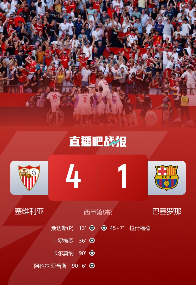 10月6日讯 北京时间10月5日22:15,2025-26赛季西甲联赛第8轮,塞维利亚在皮斯胡安球场迎来巴塞罗那的挑战。一场引人注目的比赛在此展开,结果却让巴萨的支持者们感到失望。