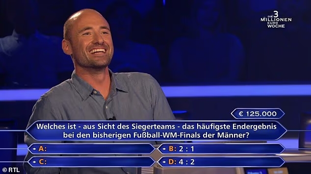 10月11日讯 在德国版本的《谁想成为百万富翁》智力竞赛节目中,一名参赛者未能正确回答世界杯决赛的比分,因此失去了12.5万欧元(约合103万人民币)的奖金。这位参赛者名叫马克·奥芬巴赫尔,他在节目中一路顺利,通过了一系列问题,最终积累了相当可观的奖金。